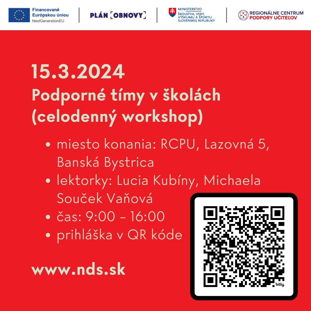 piatok 15.3.2024: Podporné tímy v školách (celodenný workshop)
